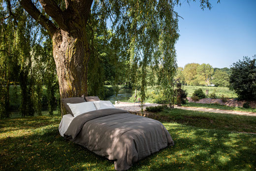 Vous trouverez des parures en lin qui est produit en Normandie, puis envoyé en Italie pour y être tissé.