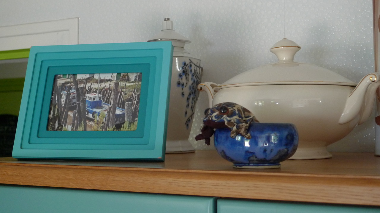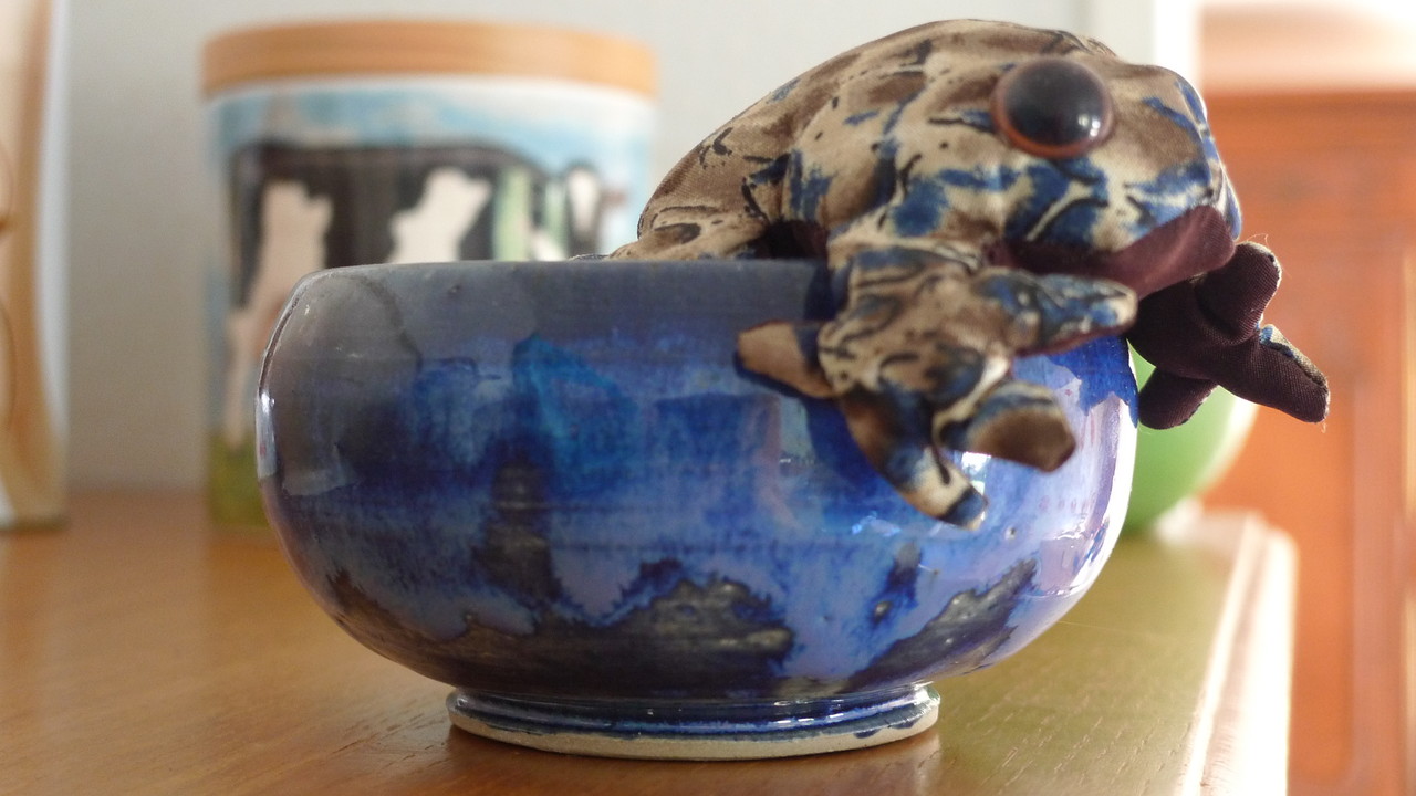 Béatrice a créé une grenouille en tissu pour s'abriter dans le bol en terre cuite que je lui ai offert lors de son séjour de l'été 2013.